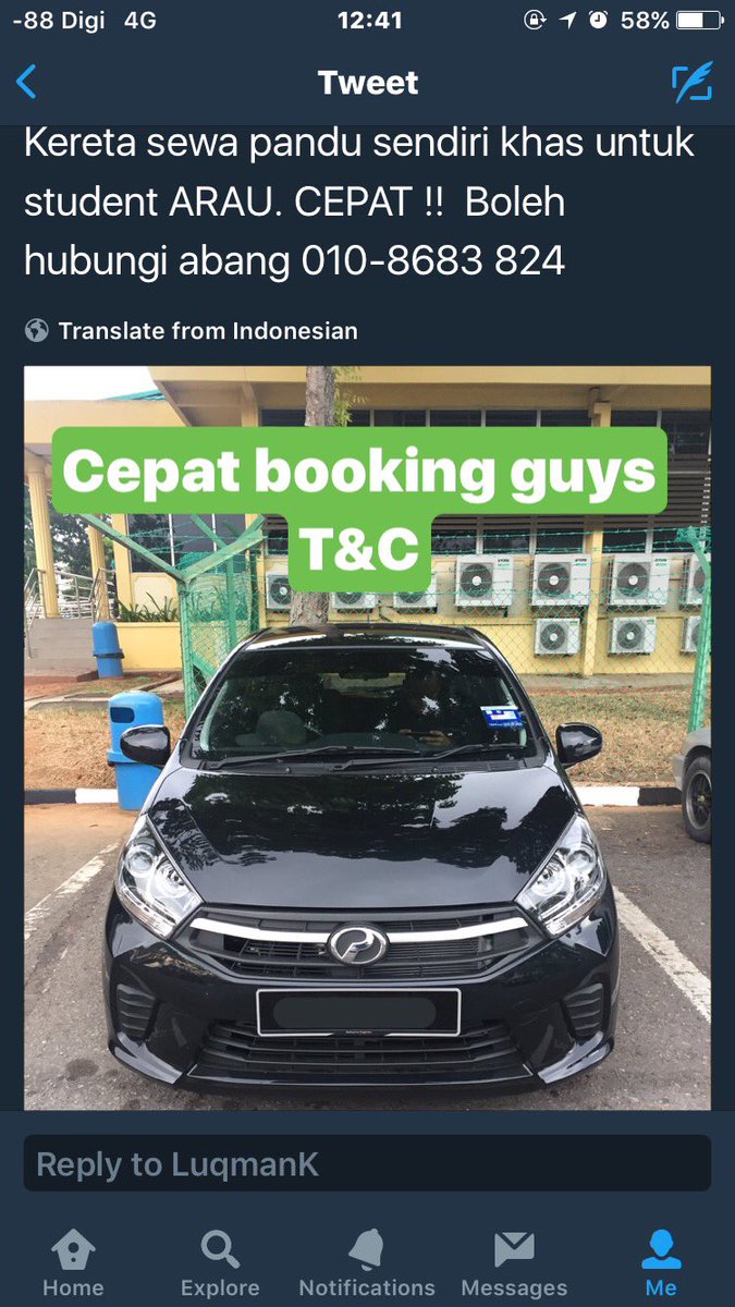 Kereta Sewa Murah Perlis -Nz Falah Travel Agency in Kangar Opening at 800 AM Get Quote Updates Posted on 28-Jan-2019 Fb Page - KeretaSewaMurahPerlis Our services. KERETA SEWA PERLIS MAJ Car Leasing Service in Kampung Batu Hampar Kampung Batu Hampar Kangar Perlis Get Quote Testimonials a month ago Reasonable price and excellent. Tertakluk kpd terma n syarat.